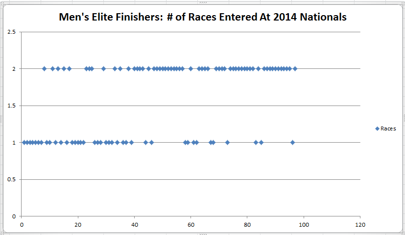 Here's a little graph showing how many races you entered at 2014 nationals vs what place you finished.